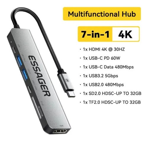 Seja o primeiro a avaliar “Hub Adaptador 7 Em 1 Essager Usb Tipo C 60w Hdmi 4k 30hz Cinza-escuro”